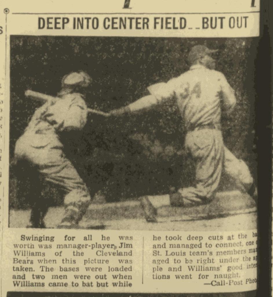 James Riley, author of The Biographical Encyclopedia of The Negro Leagues, describes James ‘Big Jim’ Williams as a young outfielder: “Big, strong and fast, he could run, hit and hit with power, but his fielding was unexceptional, and his throwing arm was a bit lacking.” (pg. 852) He was known for his aggressive playstyle and sometimes dirty antics, earning mixed reviews from peers.
