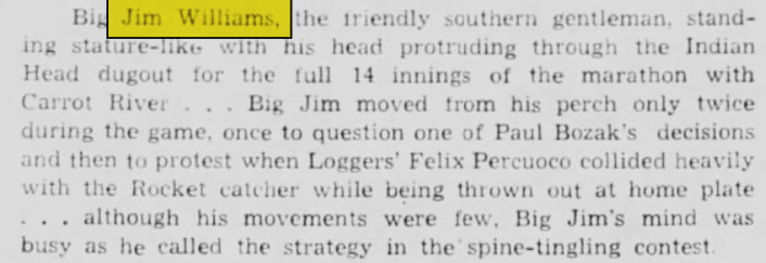 While the journey to uncover the story of Big Jim Williams has led to an unfortunate closure, it has served as a poignant reminder of the struggles faced by African American men during an era of profound racial injustice. Our search for his story is a small act of recognition—of giving voice to the men who, despite the obstacles, helped shape the game of baseball. He is important to our history as the manager of the Indian Head Rockets from 1950 to 1952, as well as a player. This included a farewell stint with the club during the latter portion of the 1954 campaign when he was signed by the organization in the role of a pinch-hitting specialist.
