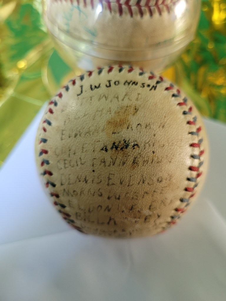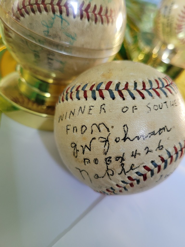 The 1940 season ended under a cloud of controversy, Liberty’s playoff exit leaving lasting bitterness. The baseball I won at auction, bearing the inscription Winners of the Southern Baseball League, might have been more than a simple souvenir; it could have been a quiet act of protest, a way for the players to claim the victory they believed was theirs. One can imagine it passing from a “G.W. (or J.W.) Johnson” in Texas to a steadfast fan who supported the Eagles until the very end—a story of pride, resilience, and the enduring bond between a team and its community.