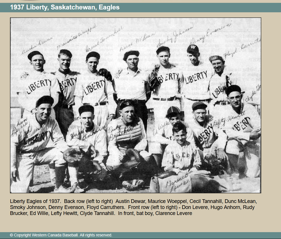 Mah, J. D., and Rich Necker. “1937 Liberty, Saskatchewan, Eagles.” attheplate.com, http://www.attheplate.com/wcbl/1937_1g2.html.