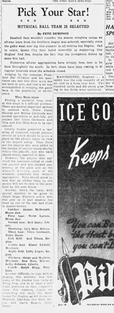 Dempson, Pete. “Pick Your Star: Mythical Ball Team Is Selected.” The Leader Post, 10 Aug. 1940, p. 13.