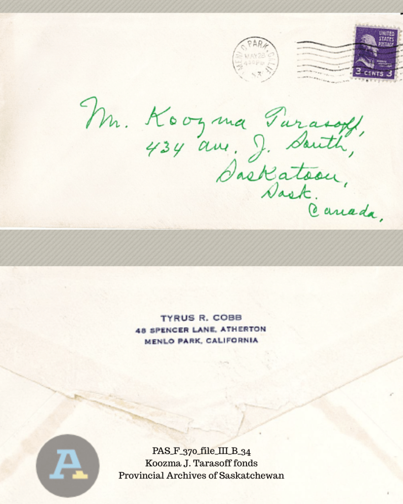 Among the campers was a teenager from Saskatchewan, Koozma Tarasoff, an outfielder, who had travelled south to soak up every ounce of instruction he could. Something about the boy’s focus must have caught Cobb’s eye. When the camp ended, Cobb and Tarasoff forged a friendship through letter writing.